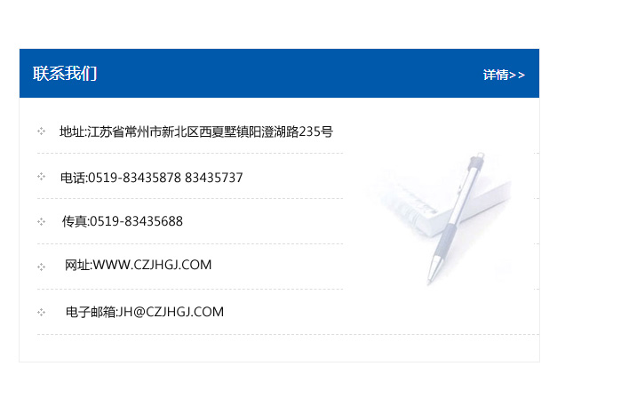 地址:常州市新北區友邦商務大廈1幢16、17層  電話:0519-85101652  傳真:0519-85112595  郵編:213022  網址:www_cz-jiayue_cn.npsywj.com  郵箱:xiajifengaa@163.com